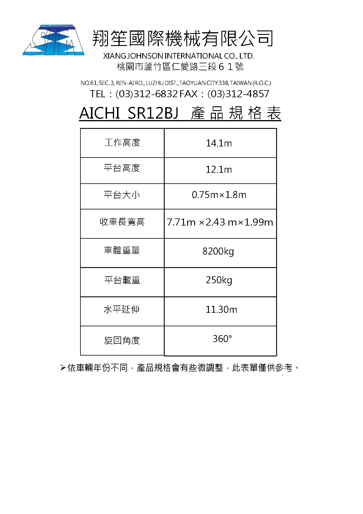 ADD / 338 桃園市蘆竹區仁愛路三段61號1樓 TEL / 03-3126832 FAX / 03-3124857 EMAIL /